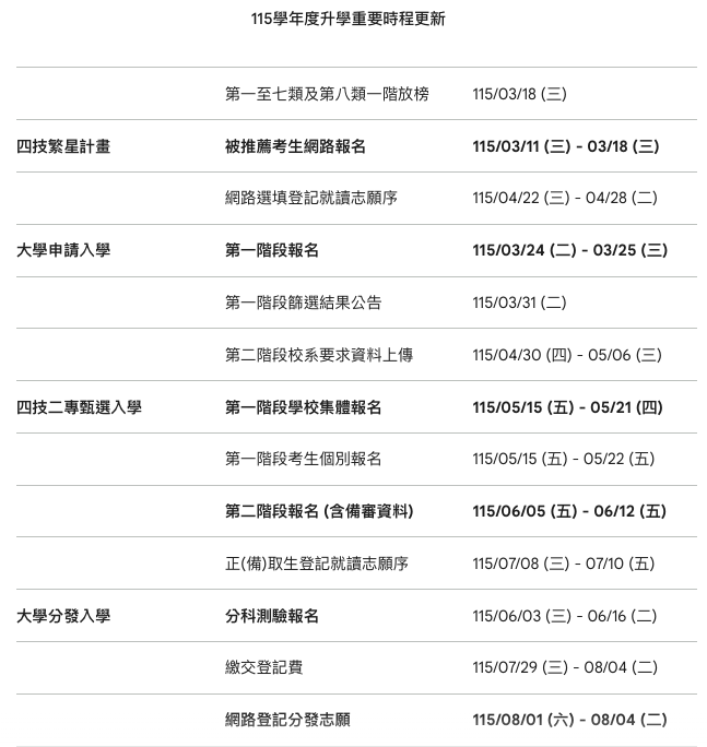 重要時程