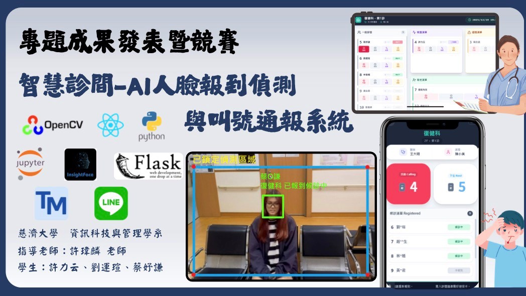 智慧診間-AI人臉辨識偵測與叫號通報系統: 榮獲 2025全國經營管理專題競賽 資訊組第一名